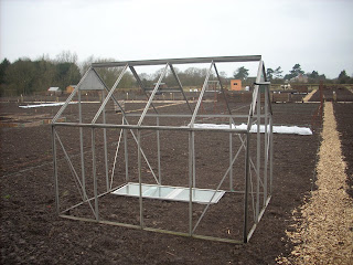 This is the greenhouse frame which I erected on Sunday afternoon:-